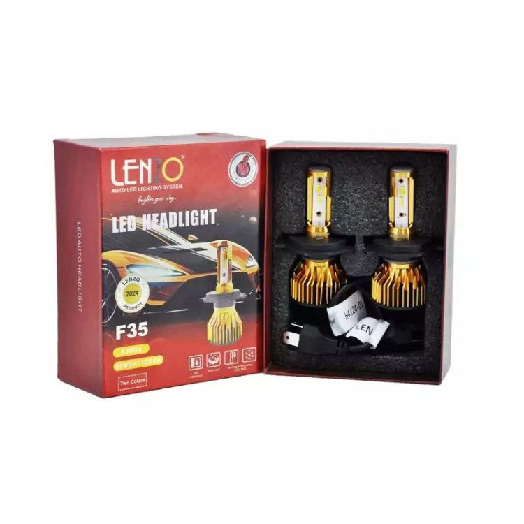 هدلایت لنزو مدل f-35 هدلایت فن دار لنزو مدل f35 دارای دو رنگ متفاوت در حالت های نوربالا و نورپایین یکی از مدل های بسیار پرطرفدار برند لنزو می باشد. هدلایت F35 لنزو، برای خرید هدلایت یکی از گزینه های مناسب و اقتصادی محسوب می شود که دارای 2 رنگ (3000 کلوین و 6000 کلوین) بوده و با داشتن چیپ CSP دارای مقاومت و عمر بالایی می باشد. این لامپ دارای بدنه فلزی مقاوم و باکیفیت است. هدلایت f35 لنزو مناسب چراغ های انواع خودروهایی که چراغ آنها تک کاسه ای مانند پژو 405 و ال 90 می باشد.