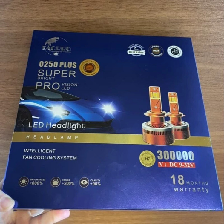 لامپ هدلایت خودرو q250خودرو قدرتمندترین هدلایت موجود در بازار هست. لامپ هدلایت q250مجهز به تراشههای بسیار قدرتمند و با اندازه مناسب در توان مصرفی 150 وات به رقیبی سرسخت برای انواع زنون و هدلایت با کیفیت تبدیل شده است. فوکس و تمرکز نـوری عـالی تا 450 متر دید بیشتر در شب 150 وات تـوان مصرفی واقعی برای هر لامپ جنس بدنه بسیار خوب با تحمل دمایی بالا 370% نور بیشتر نسبت به لامپ هالوژن قدیمی مشخصات هدلایت q250پلاس تک پرو : ساخته شده از آلیاژ آلومینیوم با کیفیت دمای رنگ: 6000 کلوین سفید یخی توان مصرفی: 150 وات برای هر لامپ عمر لامپ: تا 80 هزار ساعت ولتاژ(های) ورودی: 12/24 ولت محدوده عملکرد دمایی: 40 – تا 85+/+130 درجه سانتیگراد گواهی مقاومت دربرابر آب دارای استاندارد IP68 طراحی جدید و به روز برند تک پرو دارای رنگ نور سفید یخی دارای نویز گیر (کانباس) برای جلوگیری از نویر دی خودرو سیستم خنک کننده هوشمند با فن دور بالا و بدنه بزرگ تر دارای 3 کوپر برای دفع سریع گرمای هدلایت نور با کیفیت و پرتاب نور بالا: هدلایت q250تک پرو از چیپ CSP LED با کیفیت بسیار بالا استفاده میکند که نوری با کیفیت و پرتاب نور بالا تولید و دید شما را در شب تا 380% بهبود می بخشد که این خود خطر تصادف را کاهش دهد. عمر طولانی: طبق گفته شرکت سازنده عمر این هدلایت به بیش از 50000 هزار ساعت می رسد. این هدلایت میتواند تا 80000 ساعت عمر داشته باشد.