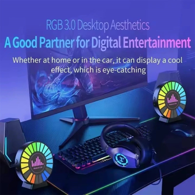 ویژگی: اکولایزر دار (RGB)، قابل شارژ با شارژر تایپ سی ، قابل استفاده روی میز و نصب روی بدنه اجسام